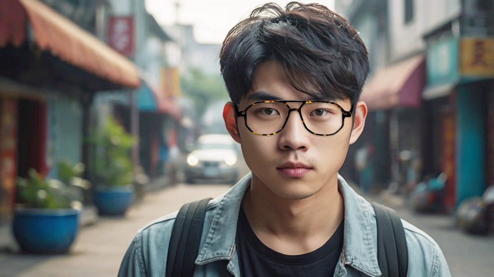眼距偏窄,臉部視覺容易集中,選框可透過較小至中等的框面大小,搭配向外延伸的線條比例,讓視線自然向左右延伸,使整體輪廓看起來更舒展、平衡。
