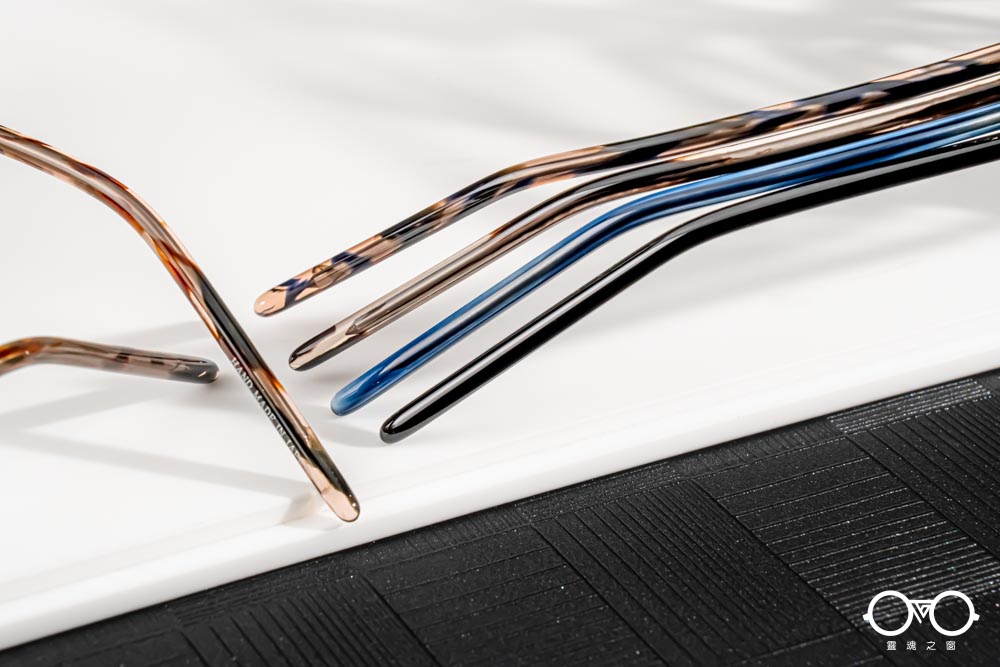 透彩的賽璐珞鏡腳內嵌鈦芯,結構極為堅硬耐用,鏡腳配置品牌字樣,結合細膩的異材質搭配,散發精美尊爵的風采,好質感的展現突顯品味獨具。