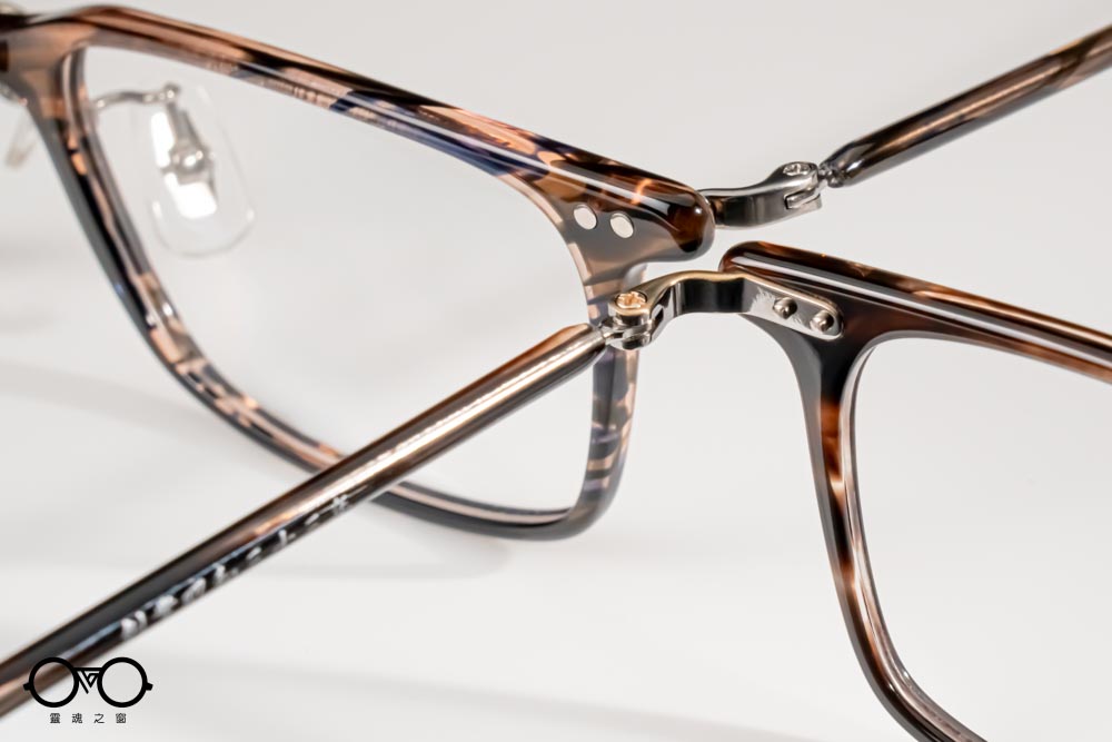 KC系列運用日本最頂級的賽璐珞材質手工製作鏡框,由於材質堅硬易燃的特性,工序流程亦相當嚴謹繁複,使得製作難度相當高,產量較為稀少,製作完成的賽璐珞眼鏡通常有著細緻的框架,質感光澤都極為晶亮,特別迷人。