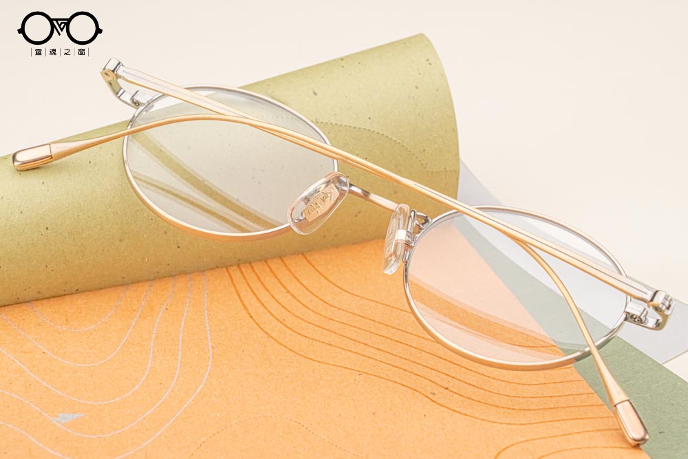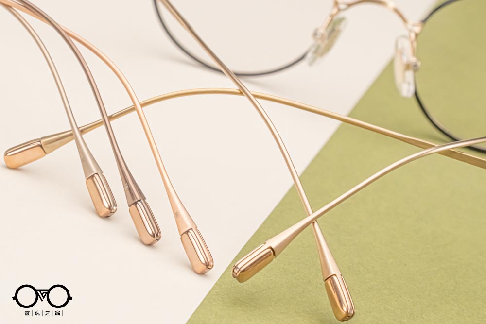 金子眼鏡KM系列以日本美學融合歐洲藝術的細膩線條,採用高水準技術加工的鈦金屬材質,打造出歐風纖細的鏡圈與鏡臂,整體輕盈、簡約而充滿知性氣質。