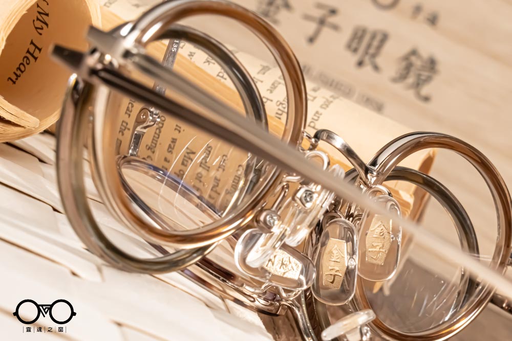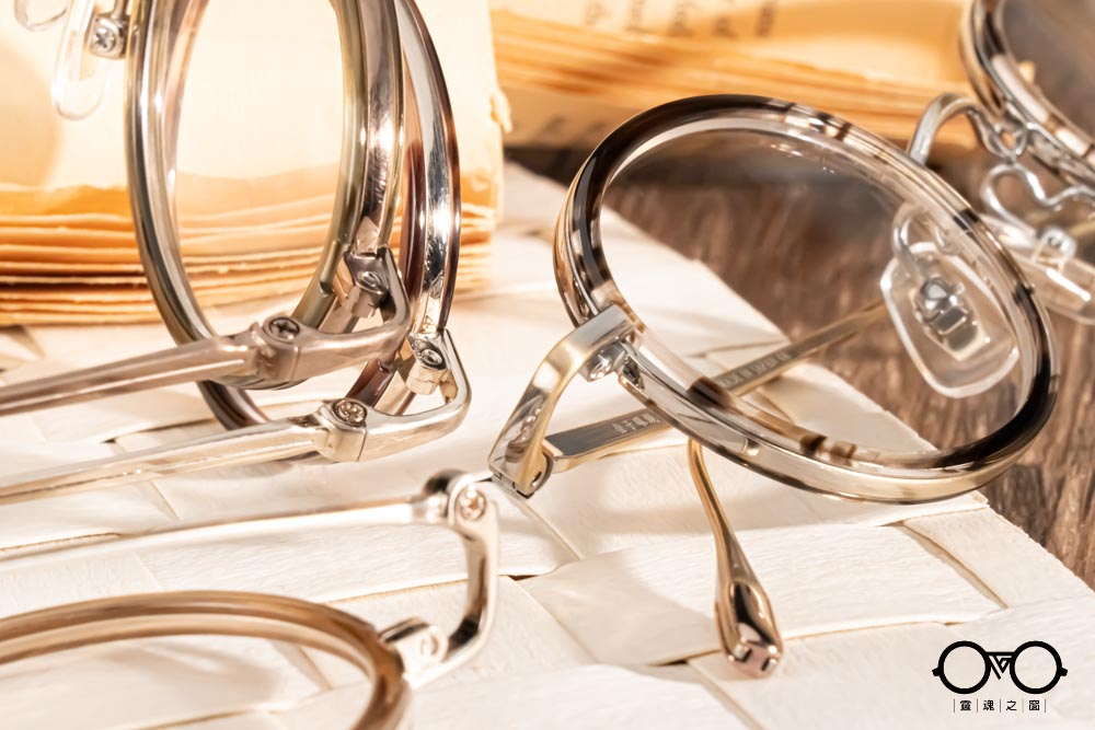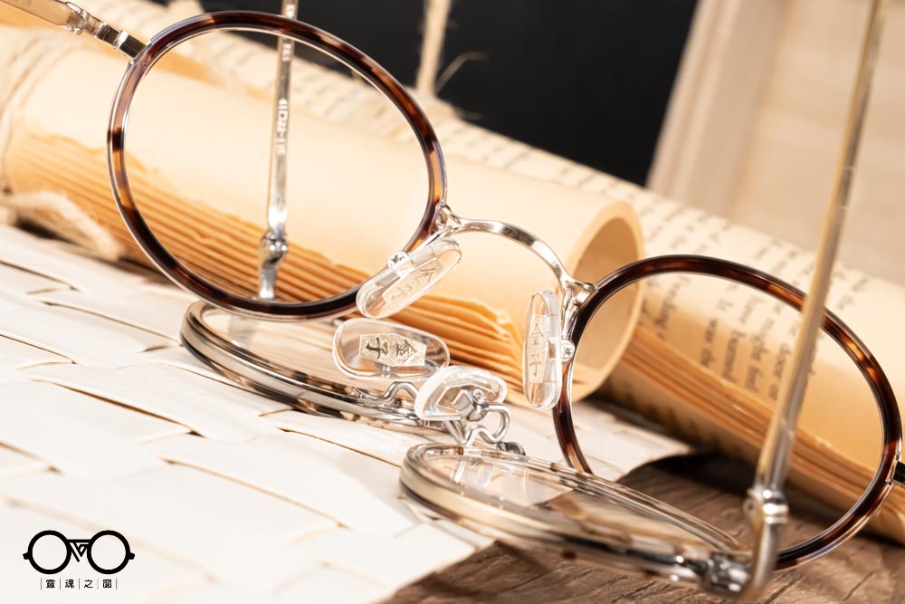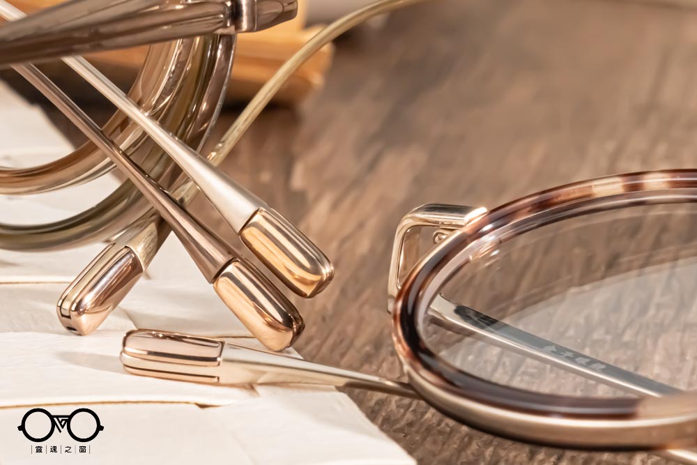中樑古典優雅的曲線,兩端細緻分岔的細節,在金子眼鏡職人細膩手藝中,散發著復古文青風格之美。