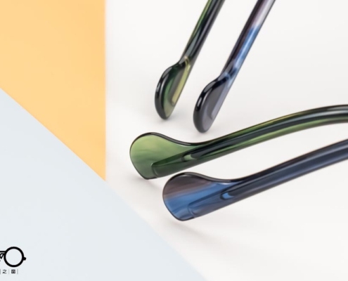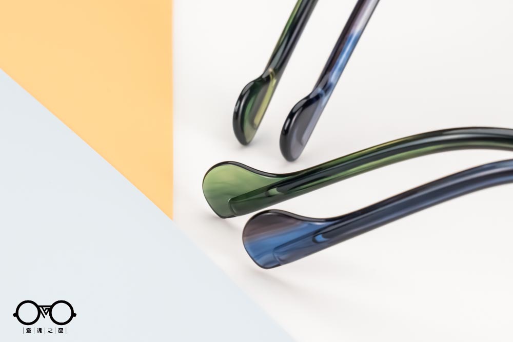 鏡腳末端作反向的圓潤設計,造型精巧纖薄,呼應整體親切圓潤的風格。