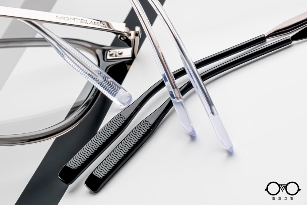 中後段套上精美的注塑材質鏡腳套,透色款鏡腳套皆做透明設計,透出精美鏡腳芯,加強鏡腳結構更為堅硬耐用,