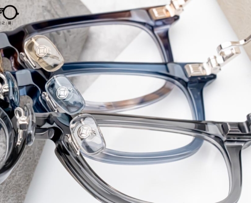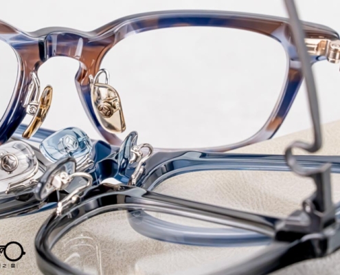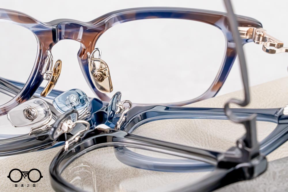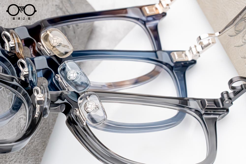 搭配透色外接式鼻墊,色彩與鏡框呼應,鼻墊鑲嵌七寶紋飾墊片,在傳統的吉祥祝福氛圍中,也強化了鼻墊的耐用性。