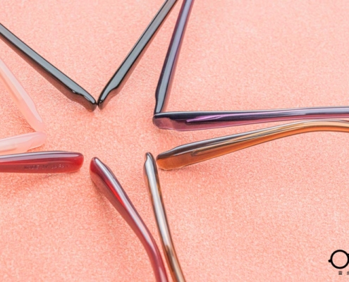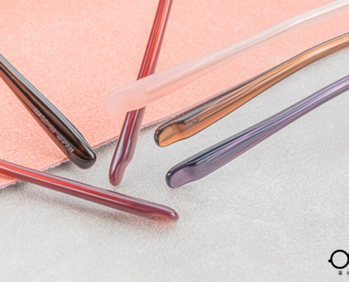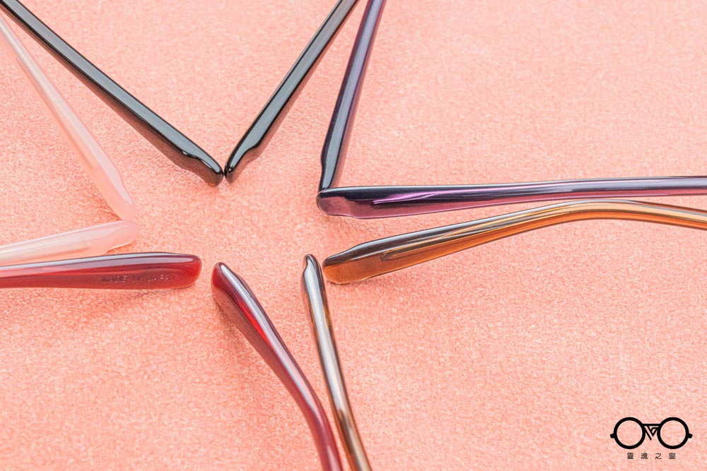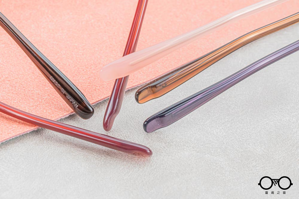纖薄的鈦金屬鏡腳刻劃中線增添視覺質感,以微弧造型輕輕環抱頭部,質感堅固耐用、富彈韌性,同時強化眼鏡耐用性,中後段套上透彩鏡腳套,強化眼鏡風格。