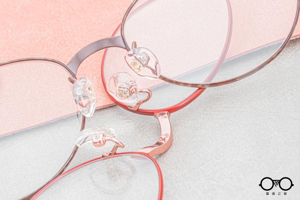 晶透感女性專用鼻墊設計,以高級醋酸纖維打造精巧而渾厚圓潤的造型,位置偏高,是妳輕盈而穩定的支撐,久戴依然舒適,不易留紅紅壓印,鼻墊上的日本傳統七寶紋飾圖樣,賦予吉祥寓意。