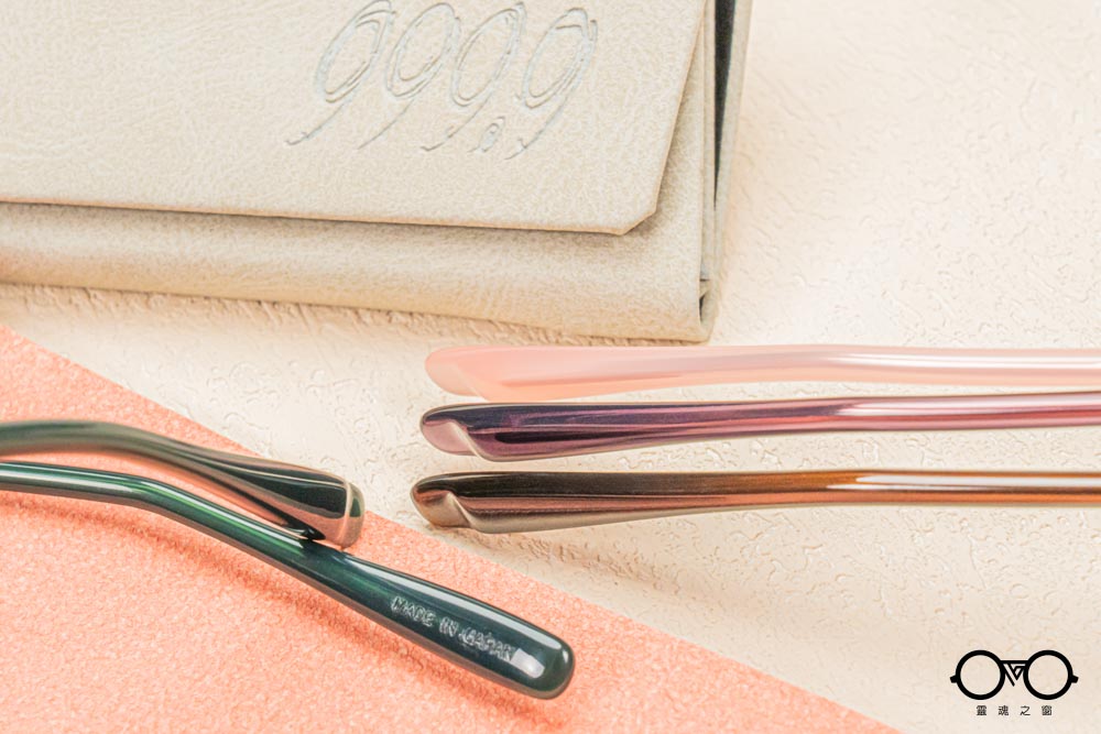 日本精品眼鏡品牌999.9 Four Nines,名稱結合純金的概念,以999.9象徵極高的品質目標,0.1則是永不停滯的追求完美,為講究配戴的舒適性,開發多款獨家鉸鏈專利,賦予眼鏡高度的彈性與包覆效果,結合現代設計思維,讓眼鏡富有機能性與時尚感。