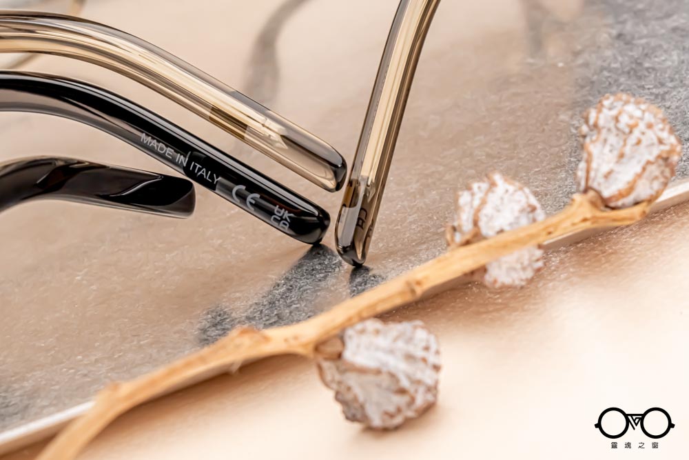 以環保醋酸纖維材質打造,醋酸纖維具有低致敏性、輕質等優點,並且可以呈現多種不同的顏色,眼鏡經拋光處理,表面展現亮麗溫潤的質感。