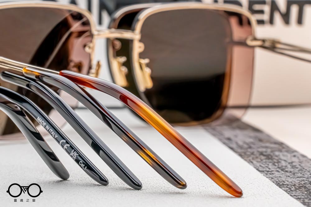 鏡腳末端皆環保醋酸纖維鏡腳套,隨不同款式作配色設計,末端方與圓弧的完美融合,帶有藝術感的氛圍,更呼應優雅的整體設計感。